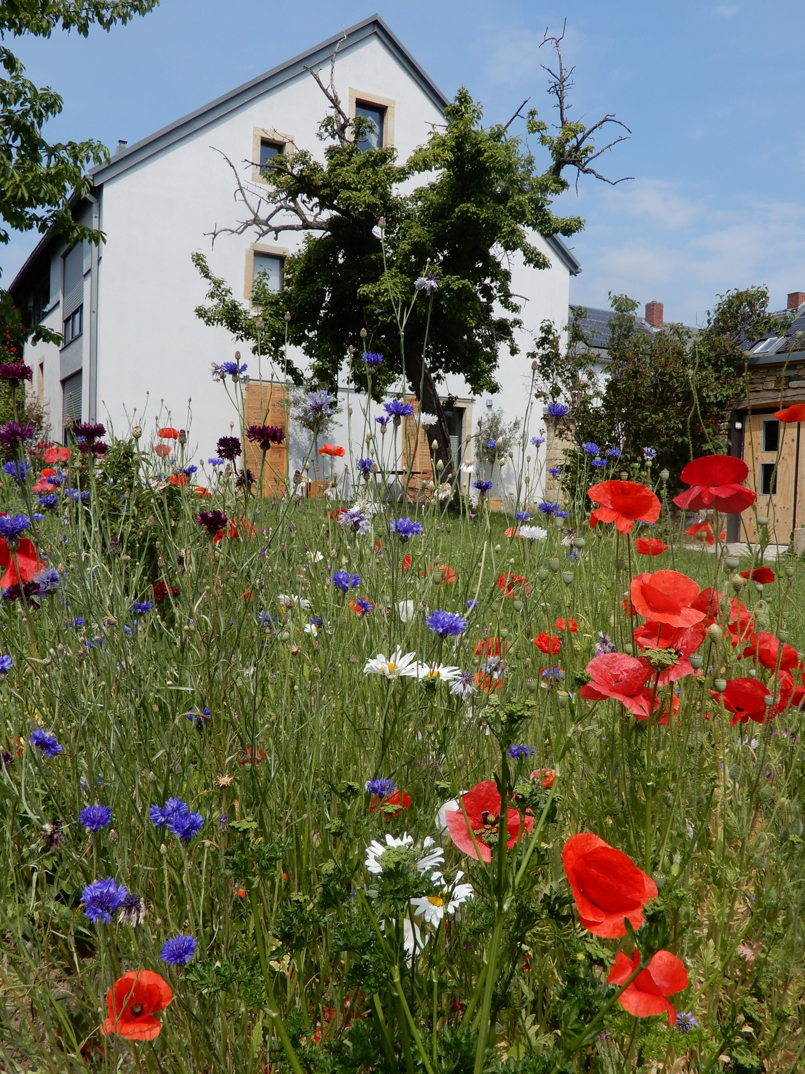 Sommerblühen auf demFerienhof Die Gartendusche ist zur Abkühlung in Betrieb